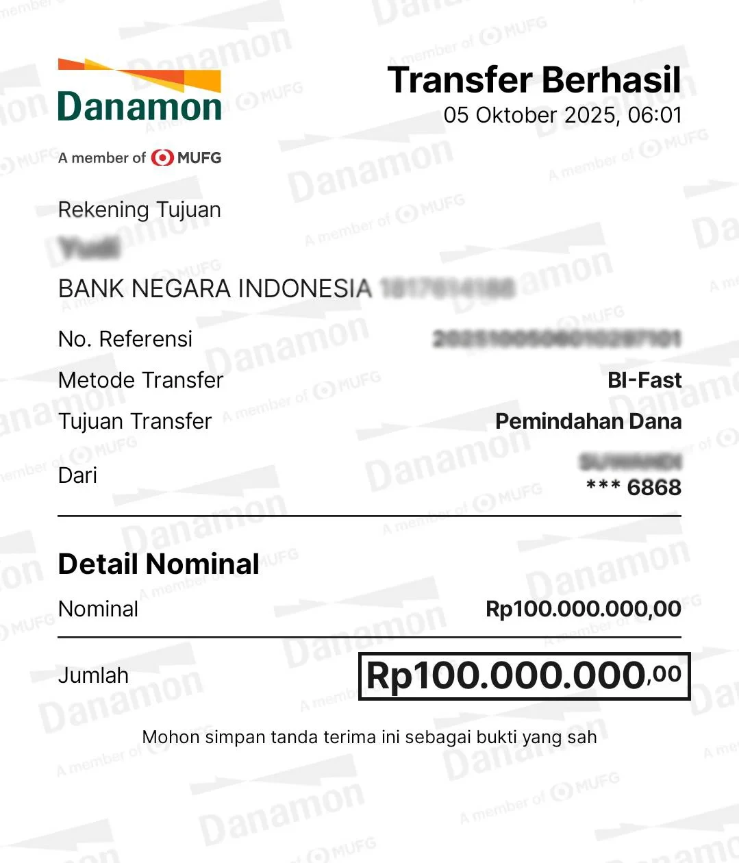 Pilihan Bank : BANK BCA, MANDIRI, BNI, BRI, SEABANK, & CRYPTO